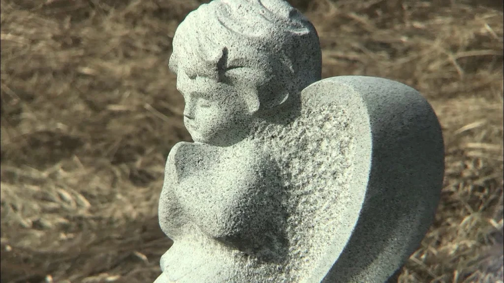 Gaišajā Somijas granītā, tiešajā kalšanas tehnikā (bez modeļa) izkalts eņģelis (amors) Autors tēlnieks Ronalds Jaunzems www.Jaunzems.Lv