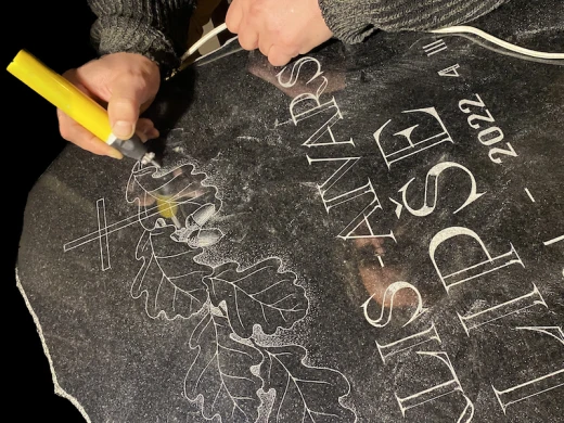 Выполняю различные виды гравировки по камню — от нанесения данных до портретов и пейзажей — по индивидуальному заказу.